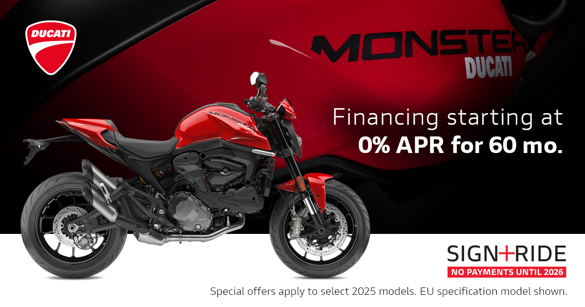 Competitive Financing on a Ducati Monster. Enjoy the best rates with Ducati Financial Services.